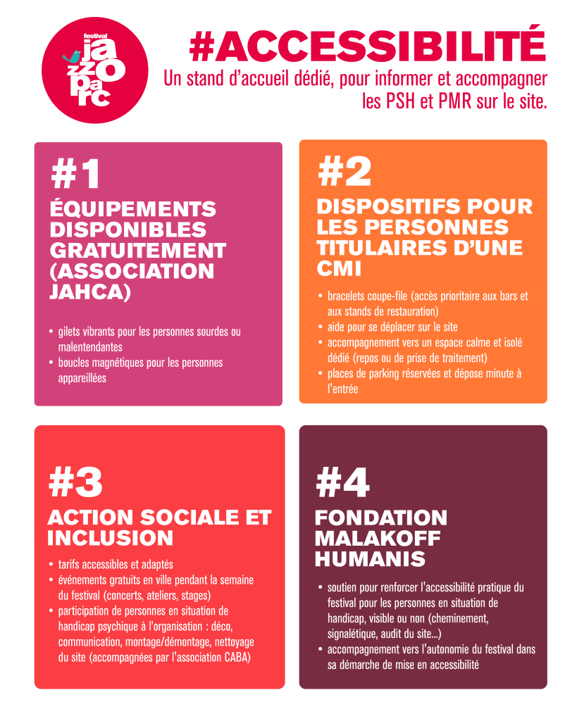 ■ Dispositifs d’écoute pour les mal-entendants : gilets vibrants et boucles magnétiques individuelles (réservation des équipements auprès de l’association JAHCA : contact@jahca.fr)