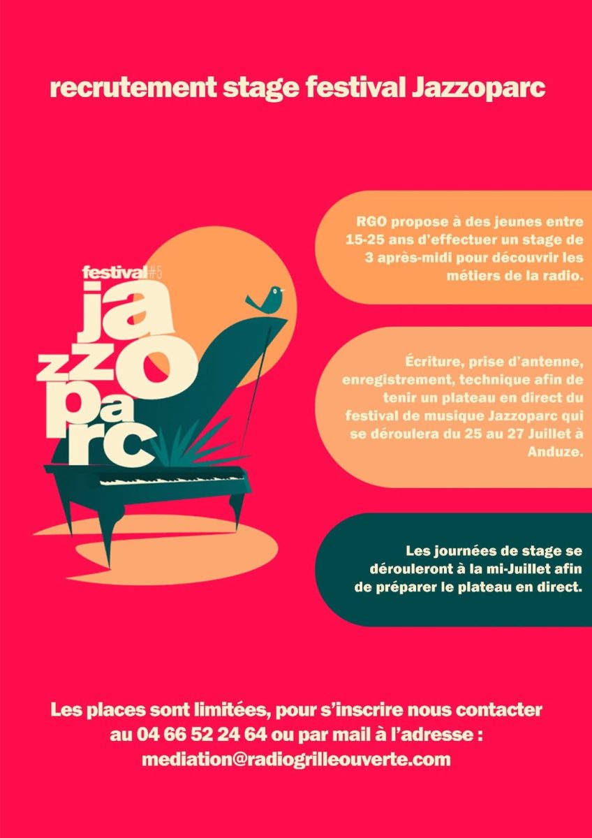 Festival Jazzoparc et Radio Grille Ouverte [RGO 88.2 FM] proposent un stage de découverte des métiers de la radio.