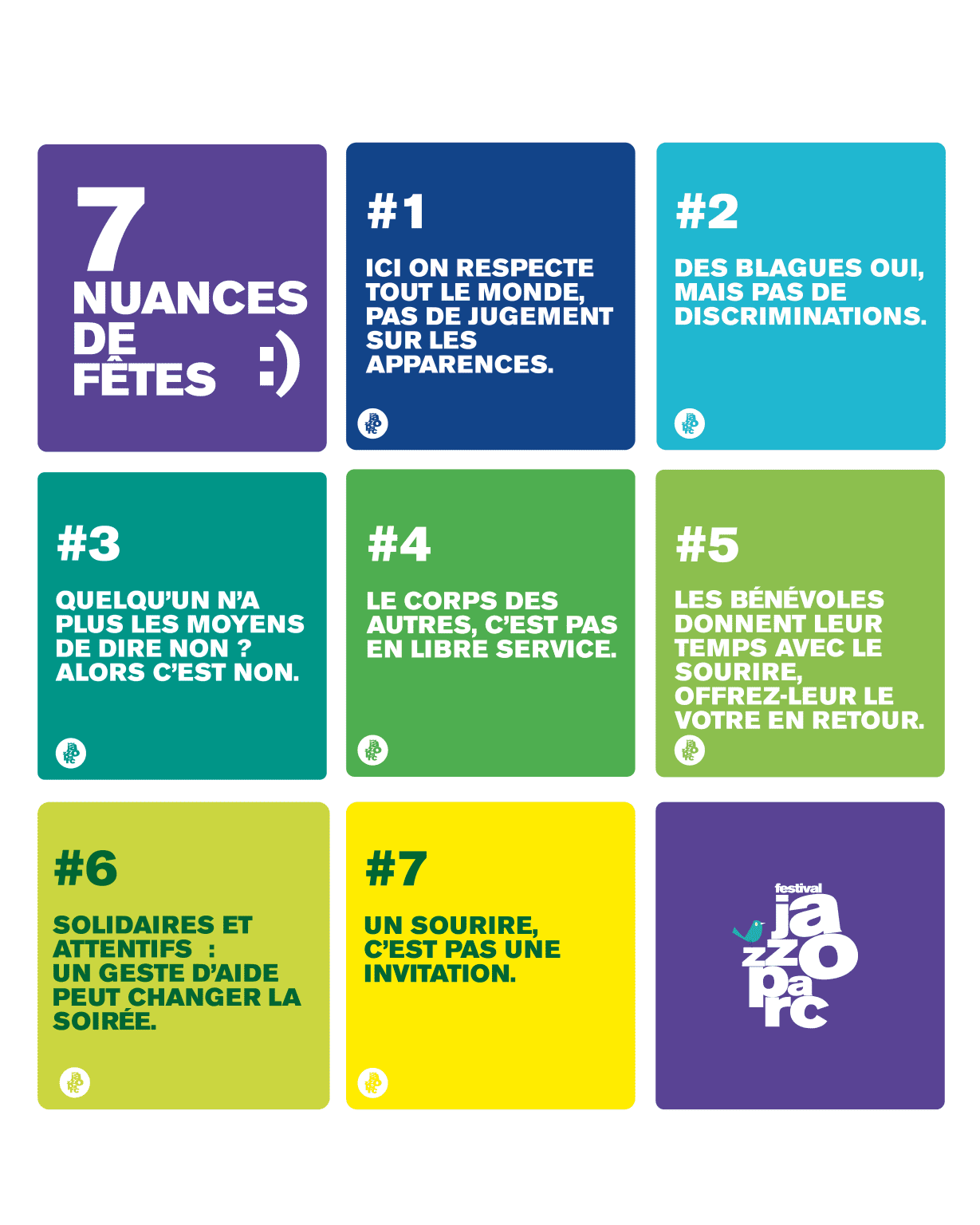 Si vous êtes victime ou témoin d’un acte de violence ou de harcèlement sur le site du festival, rendez-vous au stand « ACCUEIL ET PRÉVENTION ». Vous serez pris en charge dans le cadre du plan de lutte interne contre les VHSS : une personne qualifiée sera à votre écoute, vous orientera et vous accompagnera dans la procédure de signalement si vous le souhaitez.